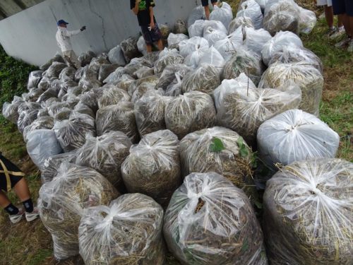 草刈りの草だけで111袋。これでもいつもより少ない。
