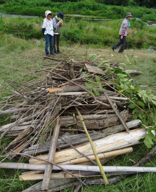 6月末にボランティア会員さんが刈ったものを、普段活動している会員以外が大勢来る今日は、集める作業。