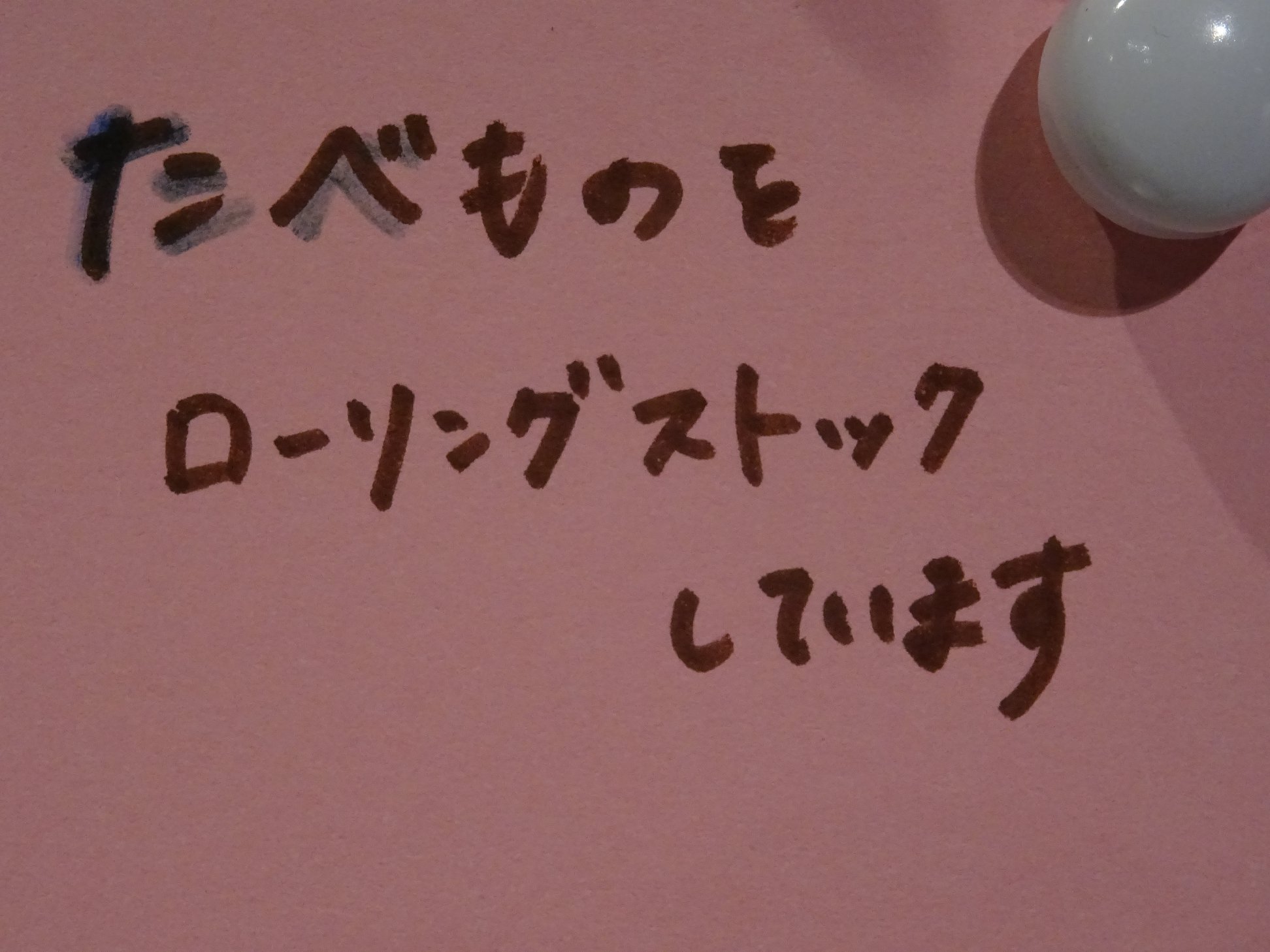 お米をはじめ、普段普通に食べている物を、プラスして買い置き、順番に使っていくので、ムダにならない『ローリング備蓄』。