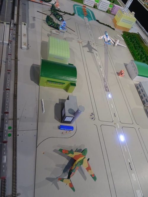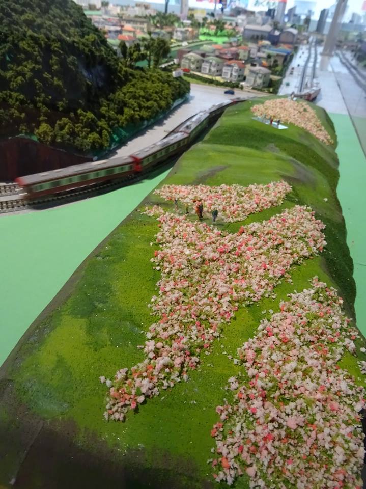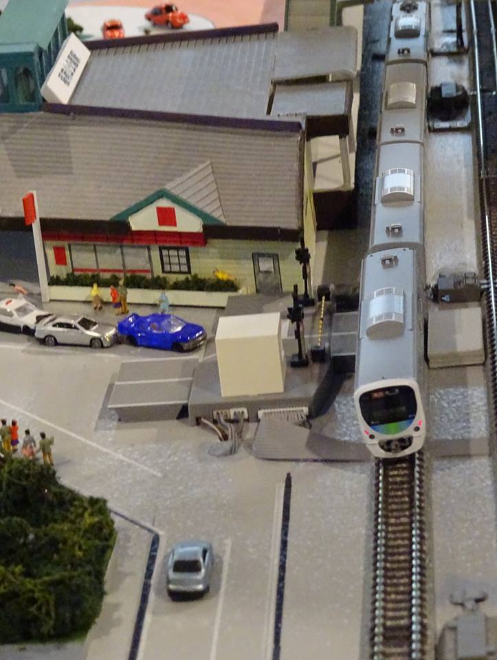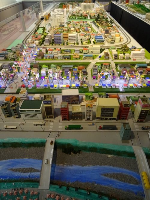 長さ7mのジオラマは、西武新宿線・池袋線の2つの街並みで、10分ごとに電車が変わるがわる動きます。駅のアナウンスや、走り出す音まで流れます。ジオラマは、10人のボランティアによって、半年間かけて製作したそうです。