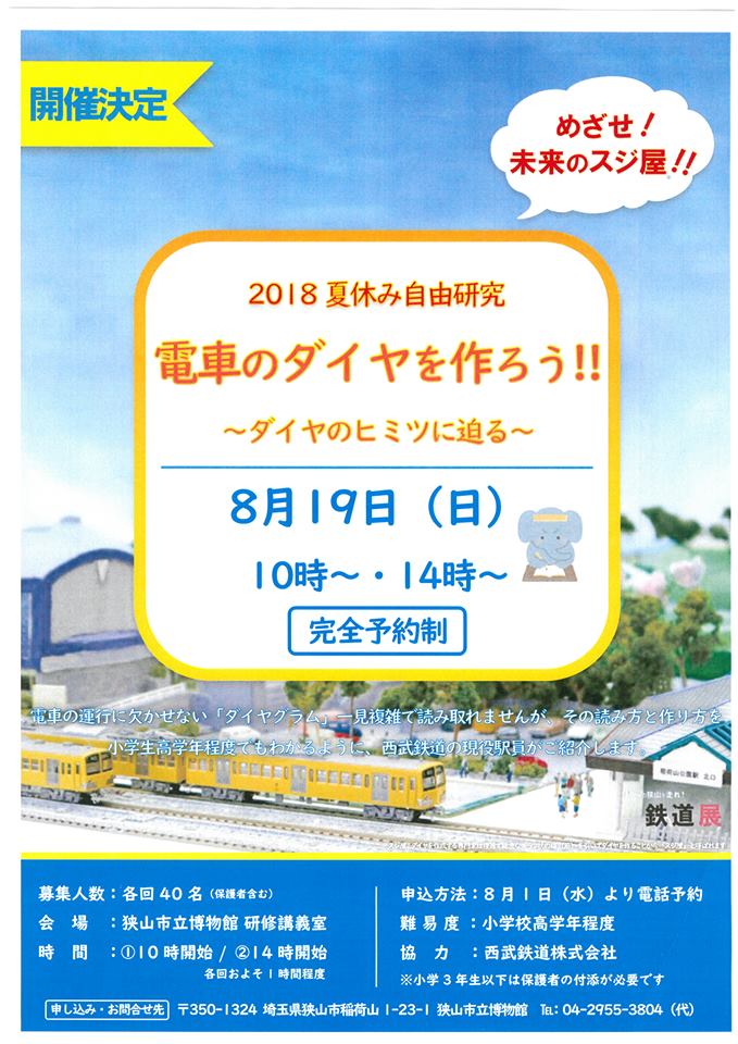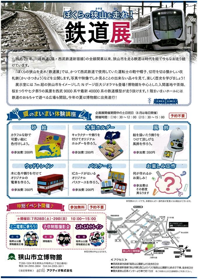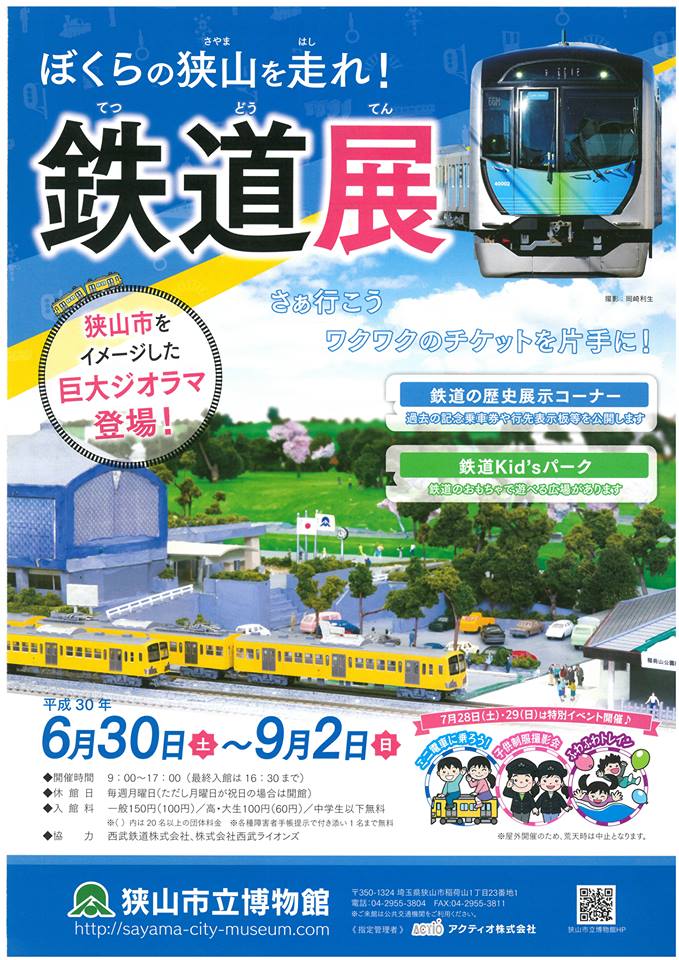 鉄道展チラシ。狭山市立博物館の館長は、私の東中時代の今野美枝子先生(音楽)です
