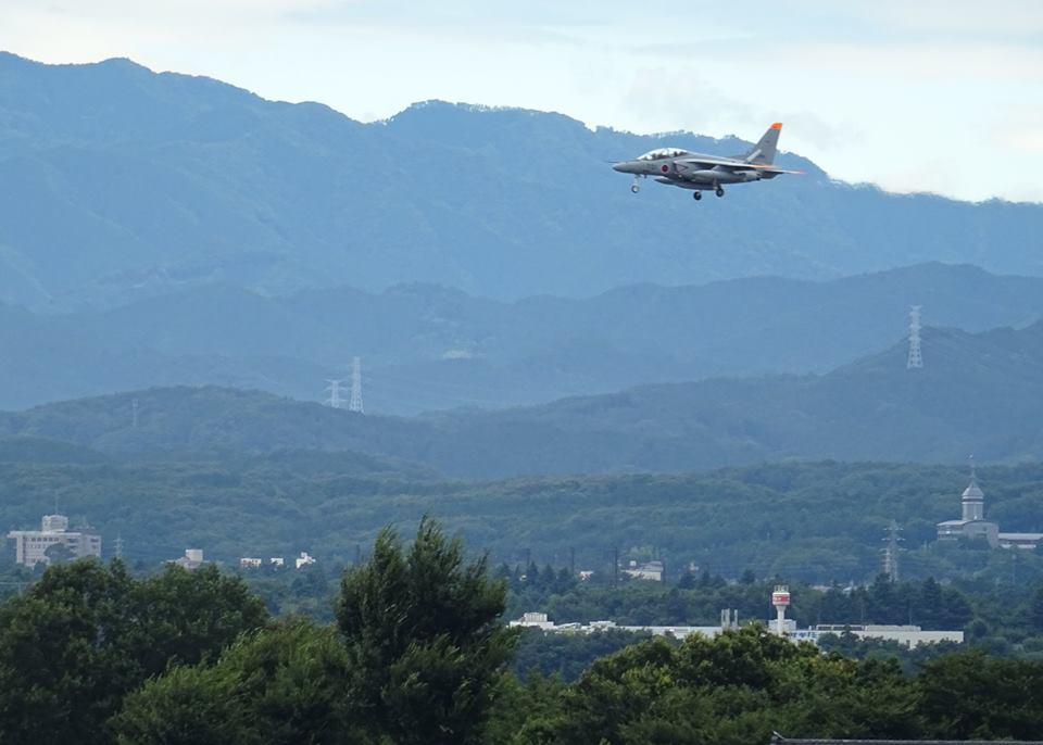 (写真左端は、飯能老年病センター)✈練習機T-4が、間を通ってくれました☺。