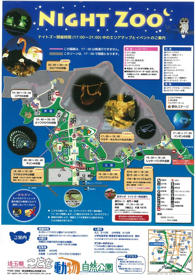 ナイトZOOでは、カンガルーが見られず(夕方に動きが活発になる為。夜行性ではない)、🐴ポニーに乗るのも3時半までなので、ナイトZOOの期間は、普通料金で3時前くらいから行くのが、私のおススメです(真っ昼間は暑いし)(昼入園 大人510円、小中学生210円。駐車場600円。その価値アリ)(5時~は、大人250円、小中学生100円。9時まで。昼の券では追加は不要)。