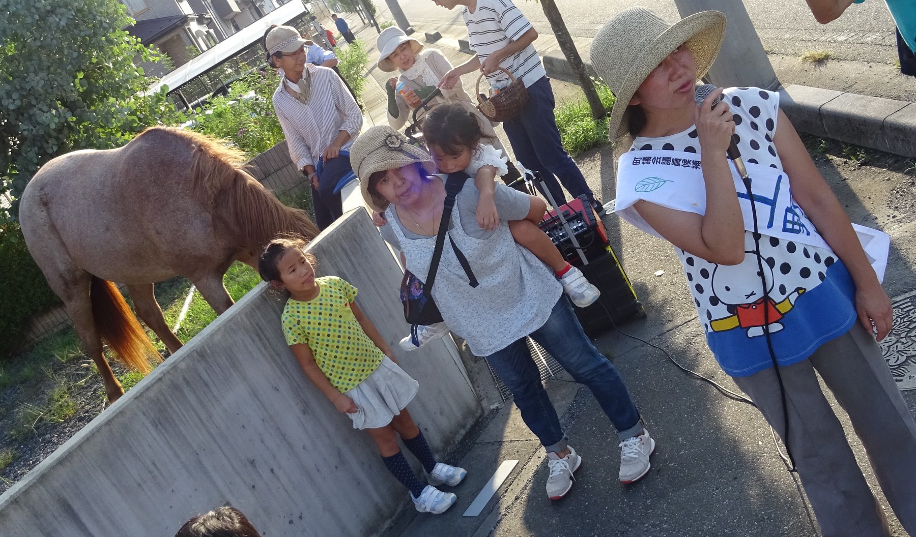 子供達が沢山、馬に触れて喜んでいました。駐車場の草も食べてくれています(