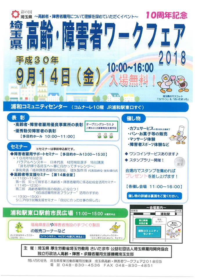 「埼玉県高齢・障害者ワークフェア2018」を開催 高齢者と障害者の雇用についてみんなで考える交流イベント-埼玉県