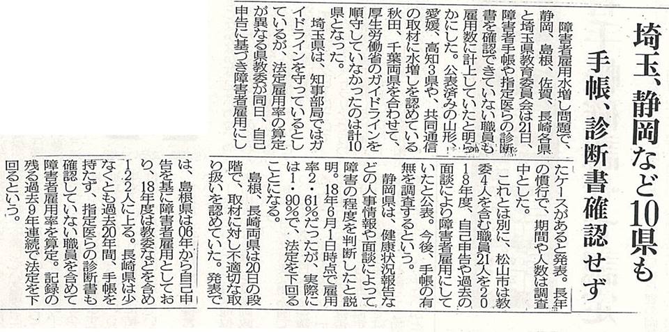 省庁の障害者雇用の不正が発覚したのは、県職員によれば、8月17日。