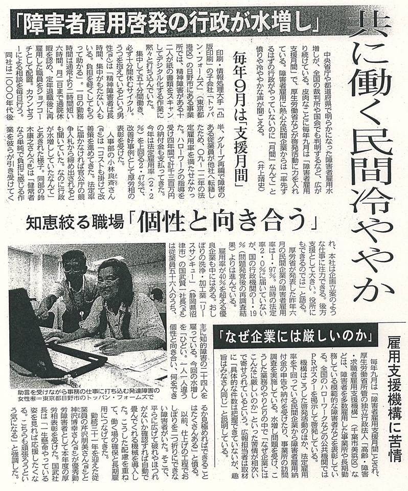 障害者雇用水増問題 小声で「視力いくつ?」 元横浜家裁職員が証言(2018年9月2日配信『東京新聞』)-松山手話サークル 椿の会