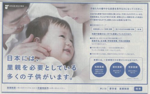 家庭で育てる事が出来ない子供が、埼玉県内にも沢山います。施設はどこも満員で、新たに建てる予定もありません(乳児院だけは整備予定)。