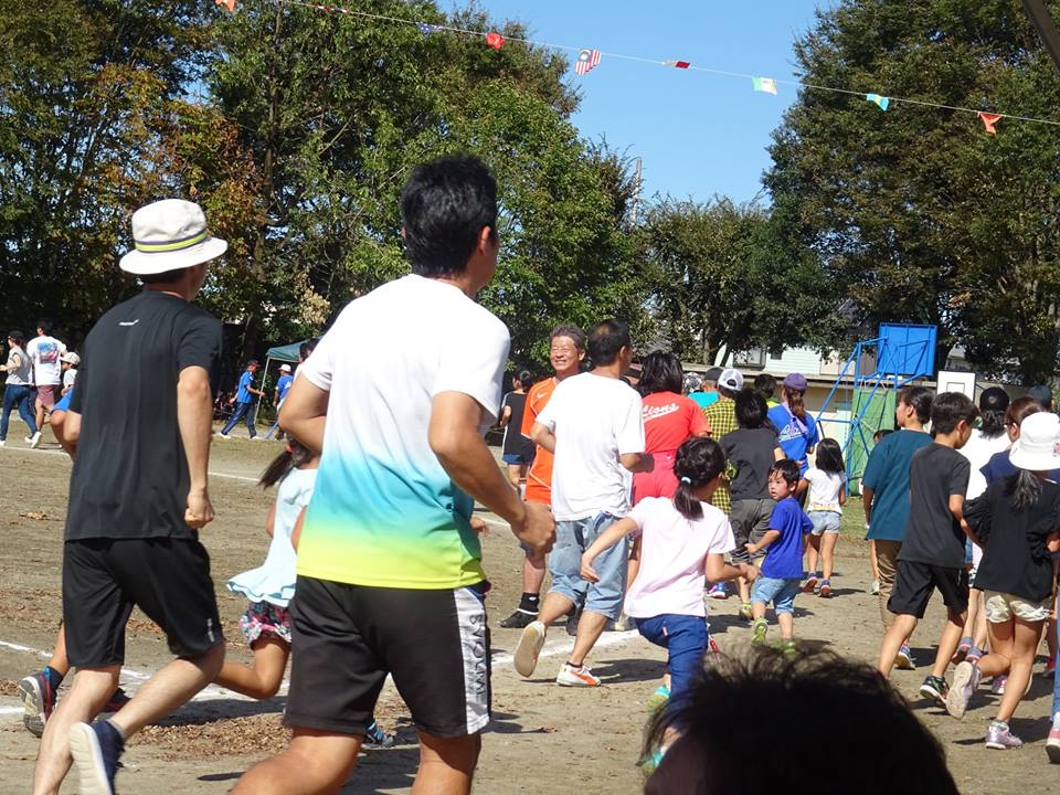 88才男性をはじめシニアや、手をつないだ親子など、沢山の方が校庭を走っていました。(笹井地区)
