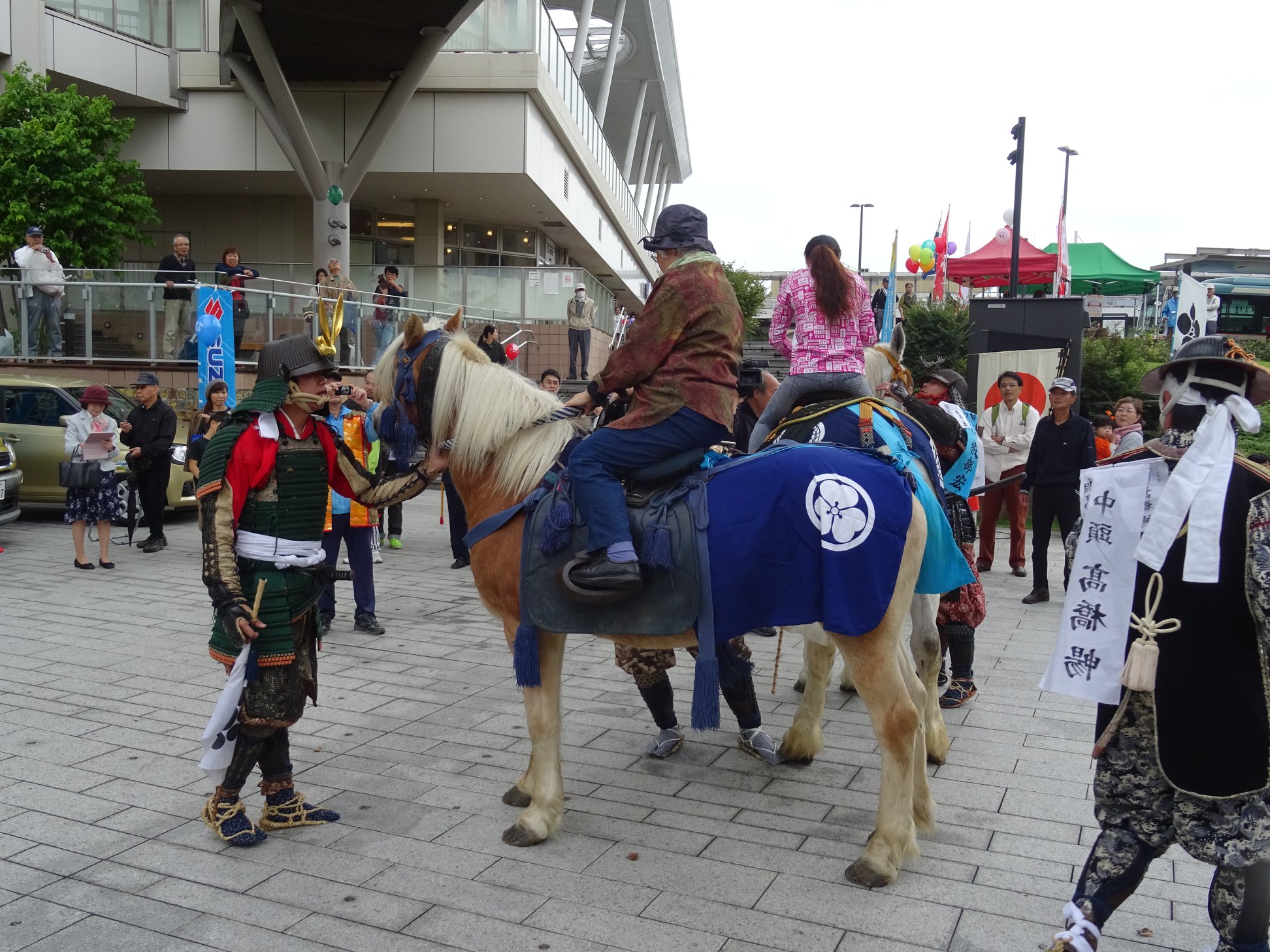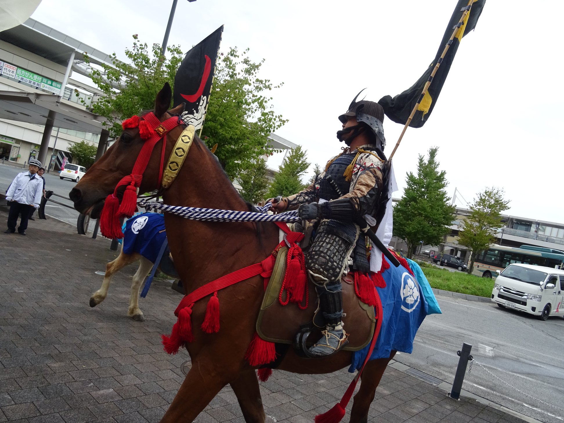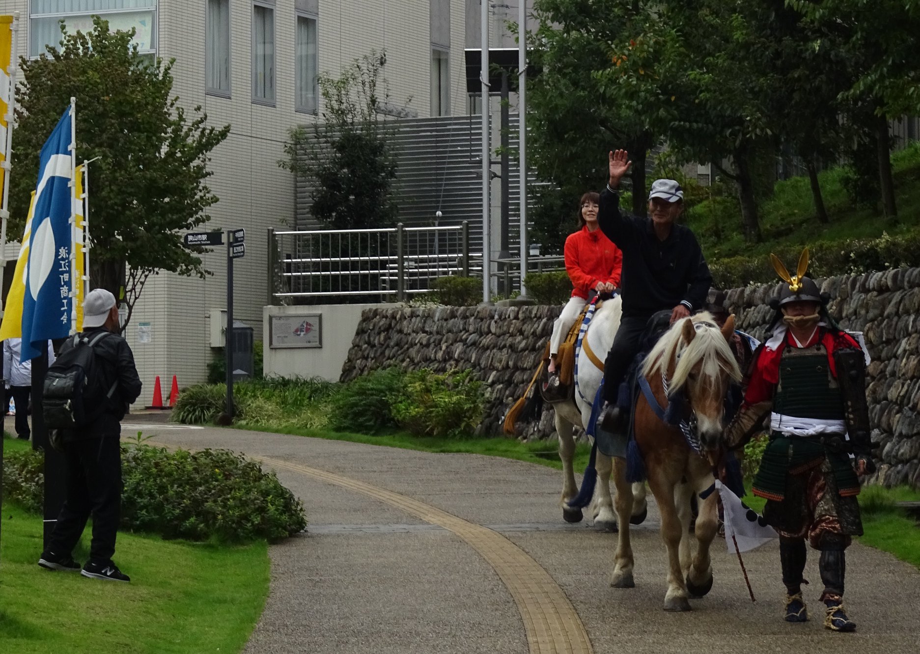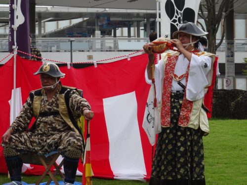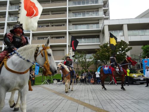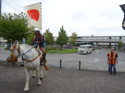 ほら貝の合図で、🐎騎馬隊が、狭山市駅西口駅前に出陣!