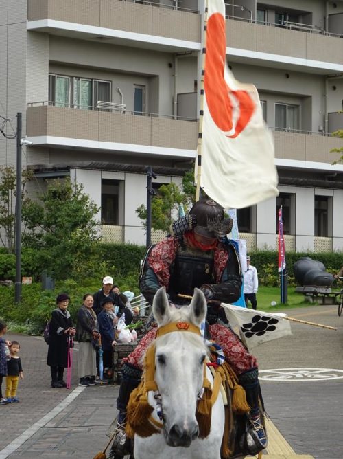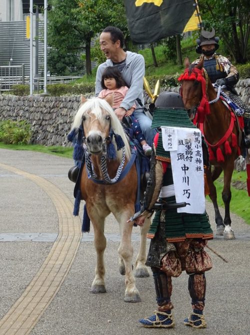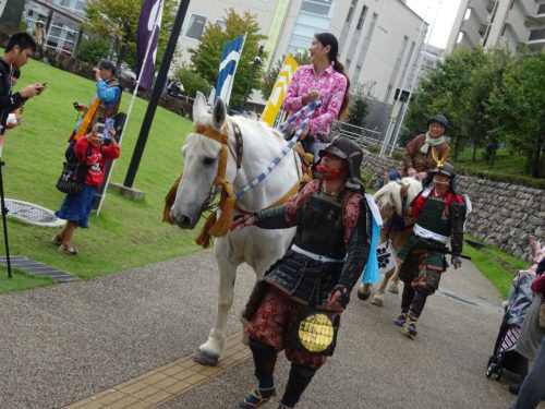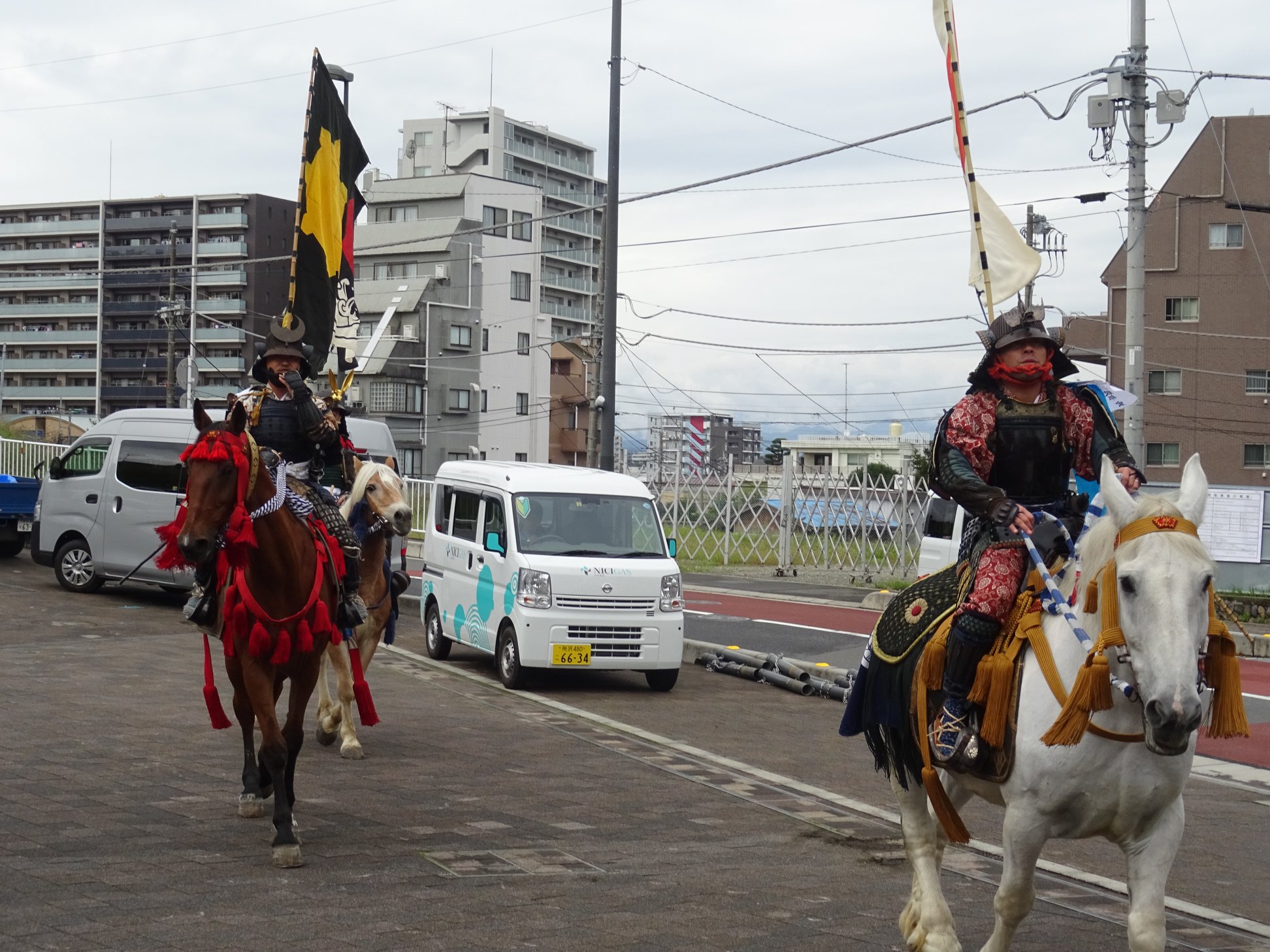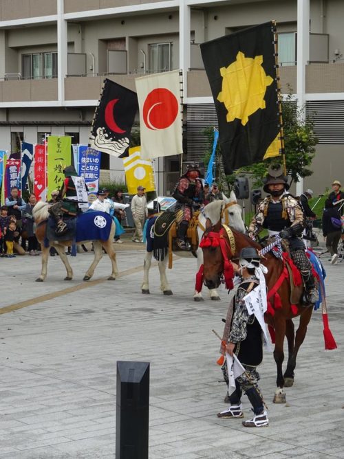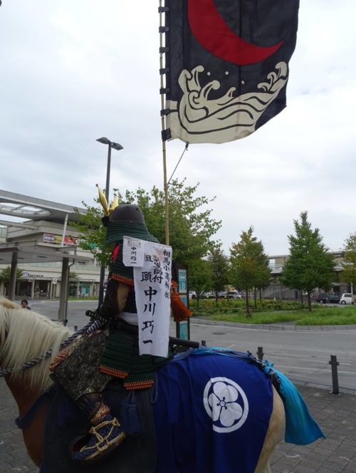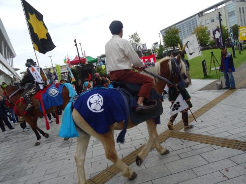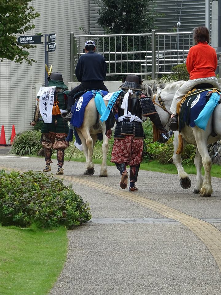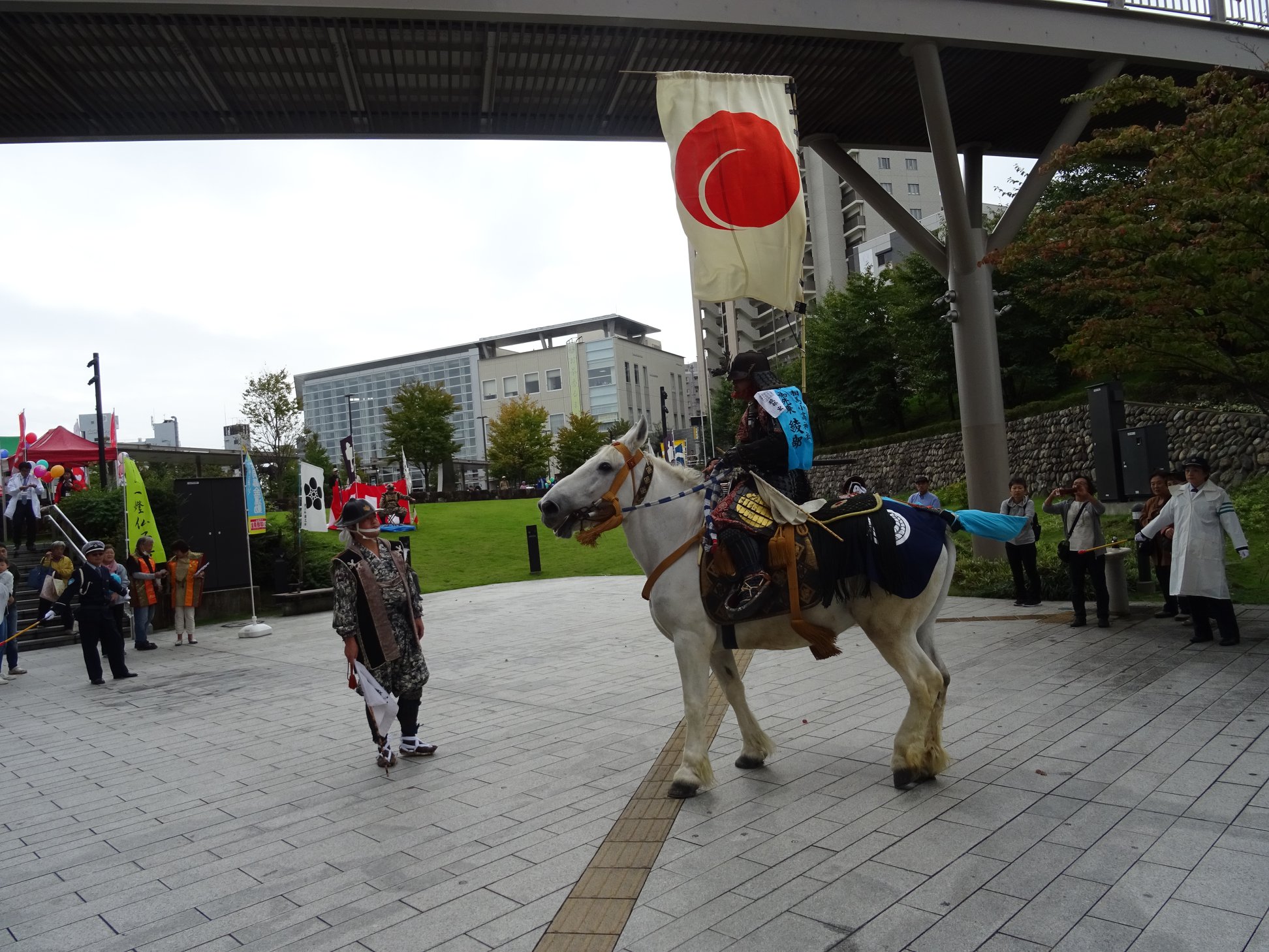 ほら貝の合図で、🐎騎馬隊が、狭山市駅西口駅前に出陣!