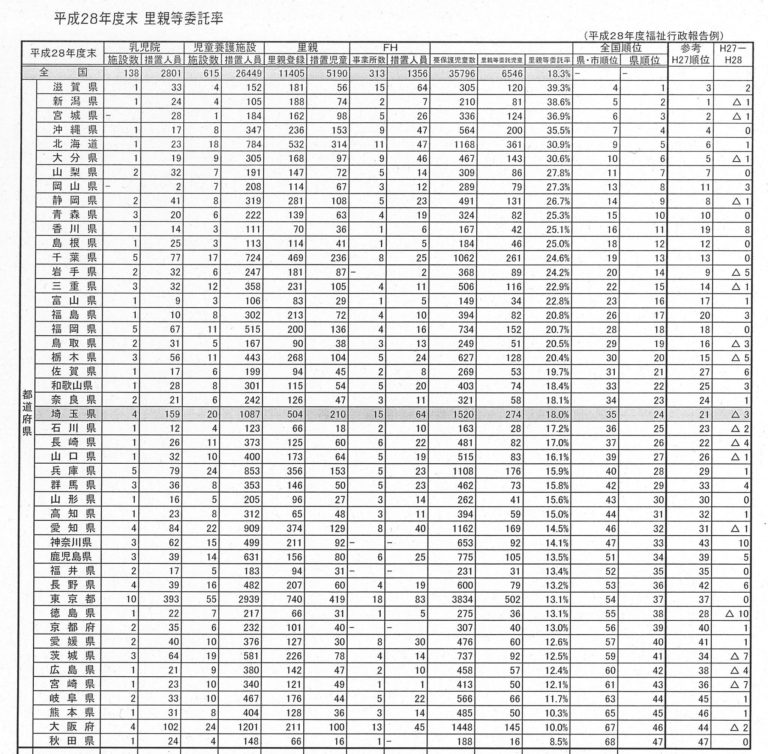 親が育てられない子供が里親に出会えた確率、埼玉県は、わずか18%。