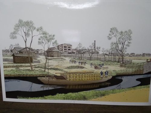 この写真の所に川があり、この旧田中家は、材木と味噌で