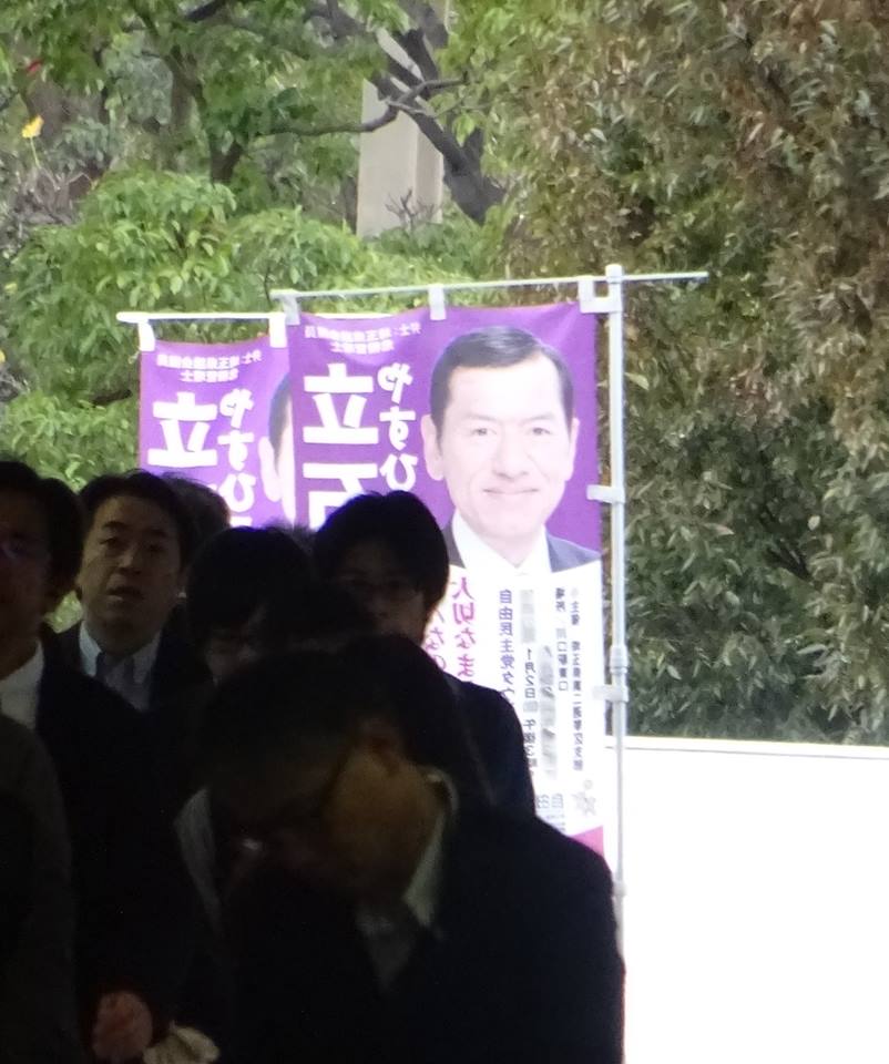 西口に立っていた立石県議。感謝。