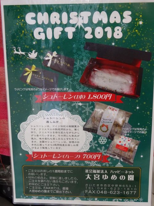 障害者施設『大宮ゆめの園』でクッキー、シュトーレン販売中。