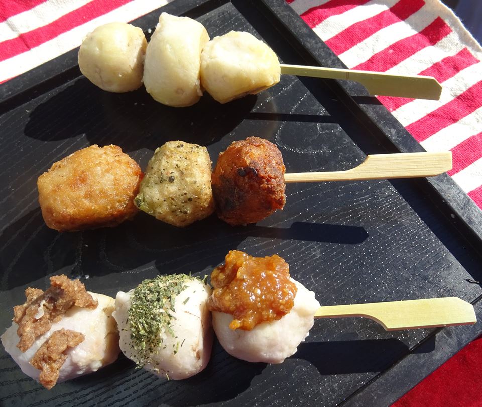 鶏の唐揚げのようにサトイモを揚げているので(📷写真の真ん中の串)、「里芋は、そこまで好きではない」という方や、子供達でも美味しく食べられる。考えましたね。