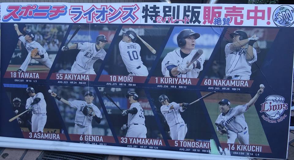 所沢西武入口で販売中。500円。今朝と、優勝した時のスポニチが付いて来ます。
