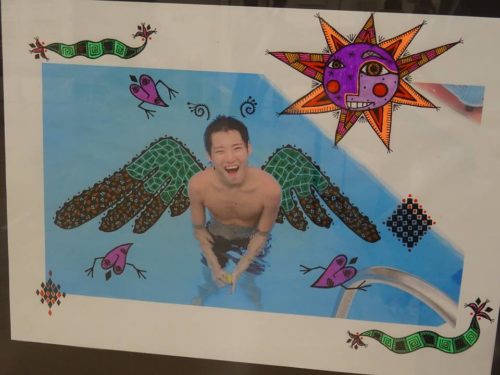 🐦鳥をイメージして、紙を持っているのですが、車イスの人が足で持っているのが、見えますか?(📷)