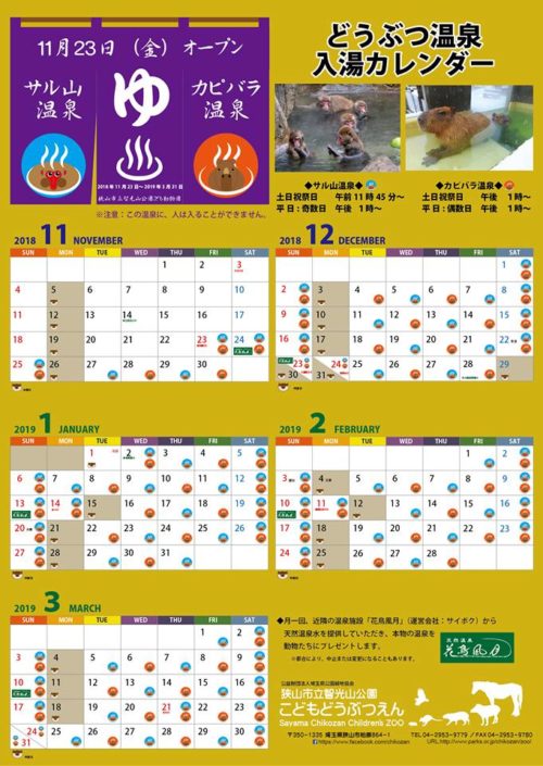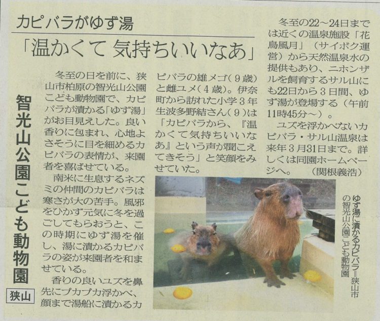ユズを浮かべないカピバラ・サル山温泉♨は来年3月31日まで。