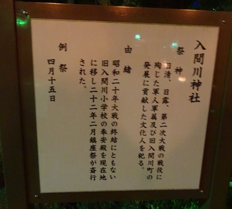 狭山市駅西口近くの八幡神社には、戦争で亡くなった人の神社、狭山市が市になる前の入間川町の『入間川神社』があり、爆弾も、太平洋戦争の戦没者碑もあります。八幡神社に行った際には、お参りします。どこにあるか分かりづらかったので、私からお願いしたところ、看板(📷写真)を入口に数年前、立てて下さいました。良かった。