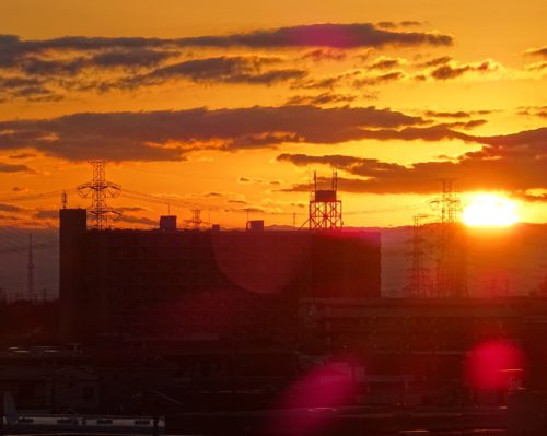 狭山の【初日の出】雲の関係で7時1分(📷写真左は、東京スカイツリー)