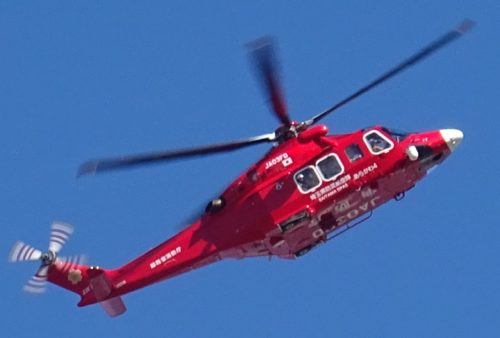 山岳救助は、気流が乱れて、超命がけ。