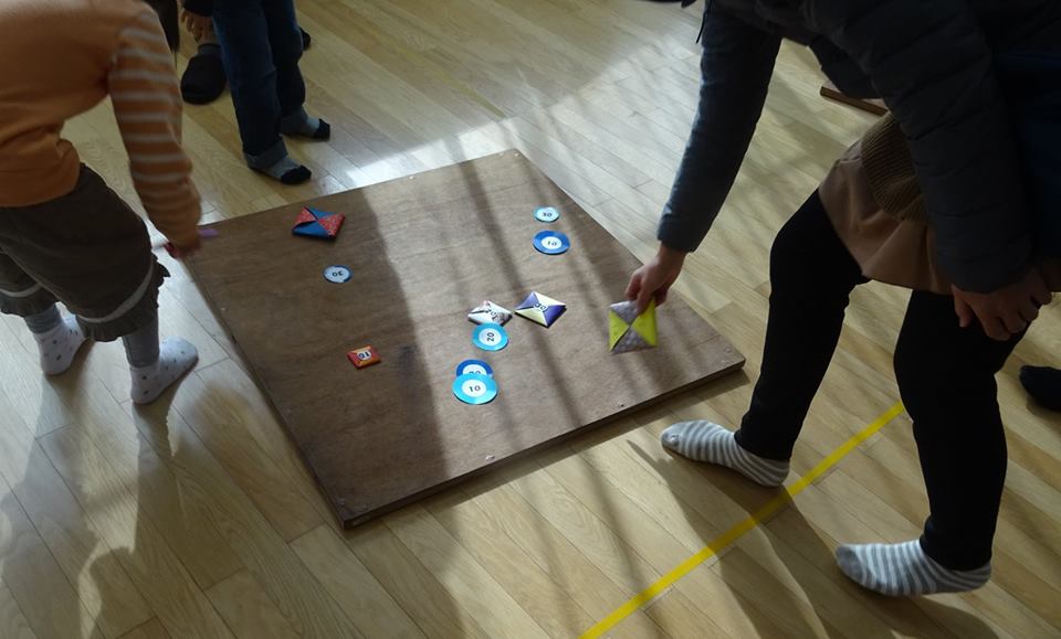 👧女の子達が、メンコで真剣に遊んでました😊。
