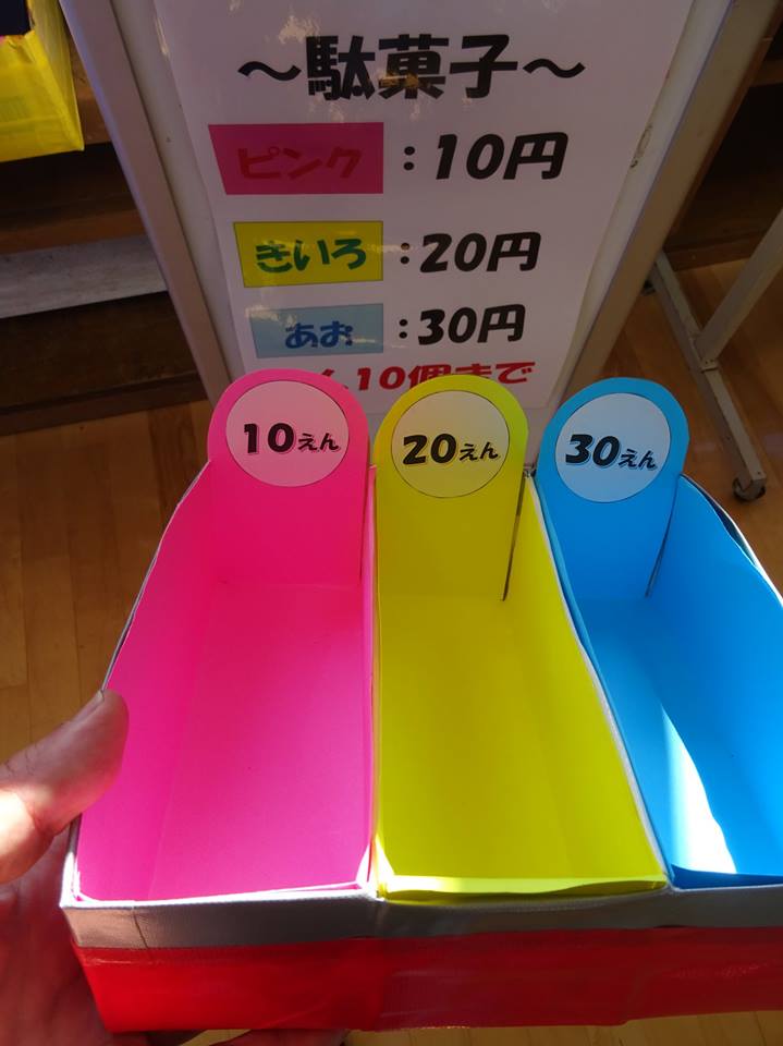 値段の所にお菓子を入れて、会計する。NPOの方が作