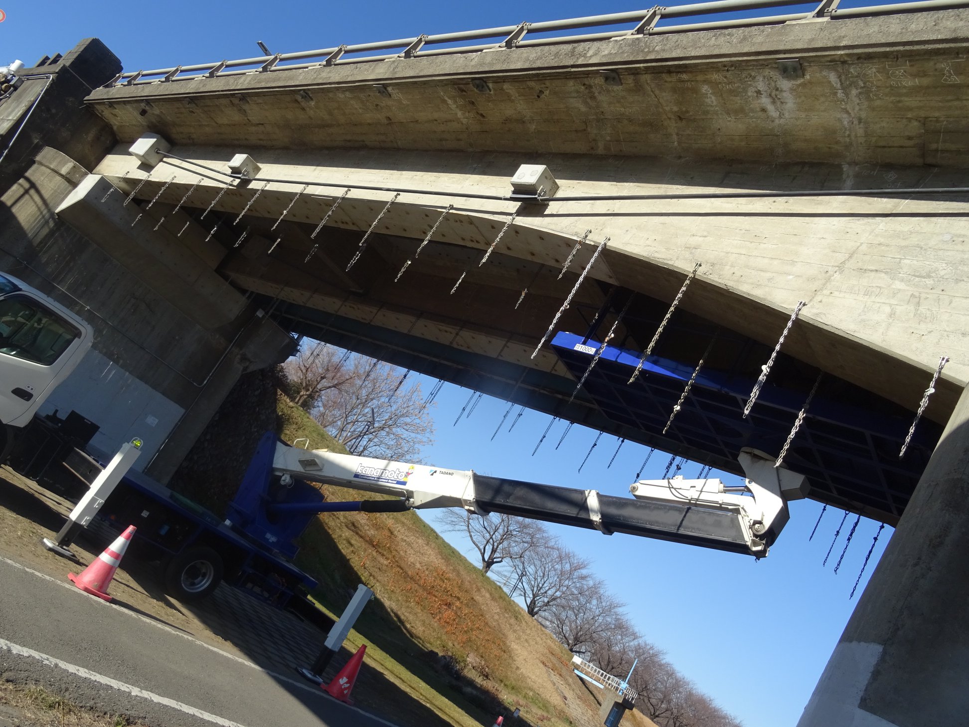 狭山・県道『新富士見橋』の橋の下の修繕工事は、🚲自転車道に支障無く行うとの事。