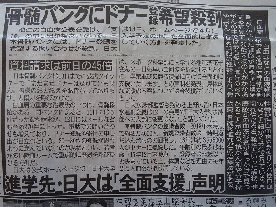 『骨髄バンク』の問い合わせが、池江選手の病名公表前日の45倍(270件)との事ですが、前日は6件。実は、白血病患者さんの為の骨髄バンク登録に向けた推進体制は、不充分です。