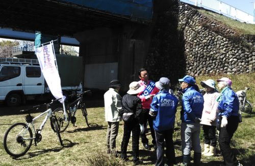 📷写真は、日頃、河川敷の美化活動をされている『入間川左岸を美しくする会』のボランティアさん達の休憩時間に🚲自転車でお邪魔し、河川敷のあり方についてご意見を頂きました。ありがとうございます