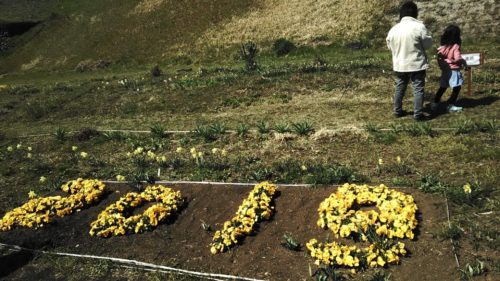 都内から狭山のおばあちゃん家に遊びに来た子が、入間川・河川敷に来て、🌸花を見ていました。