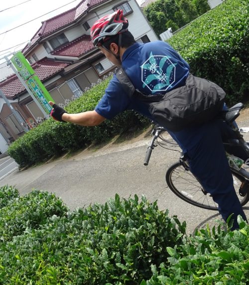 狭山には、毎日のように、県外などから『茶摘み体験』に来られる方が、いらっしゃいます(📷写真)。🚴サイクリストの方も。