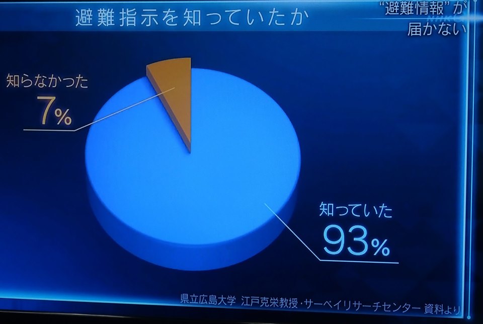 西日本豪雨で、『避難指示』が出ていた事を、9割以上の人が「知っていた」。