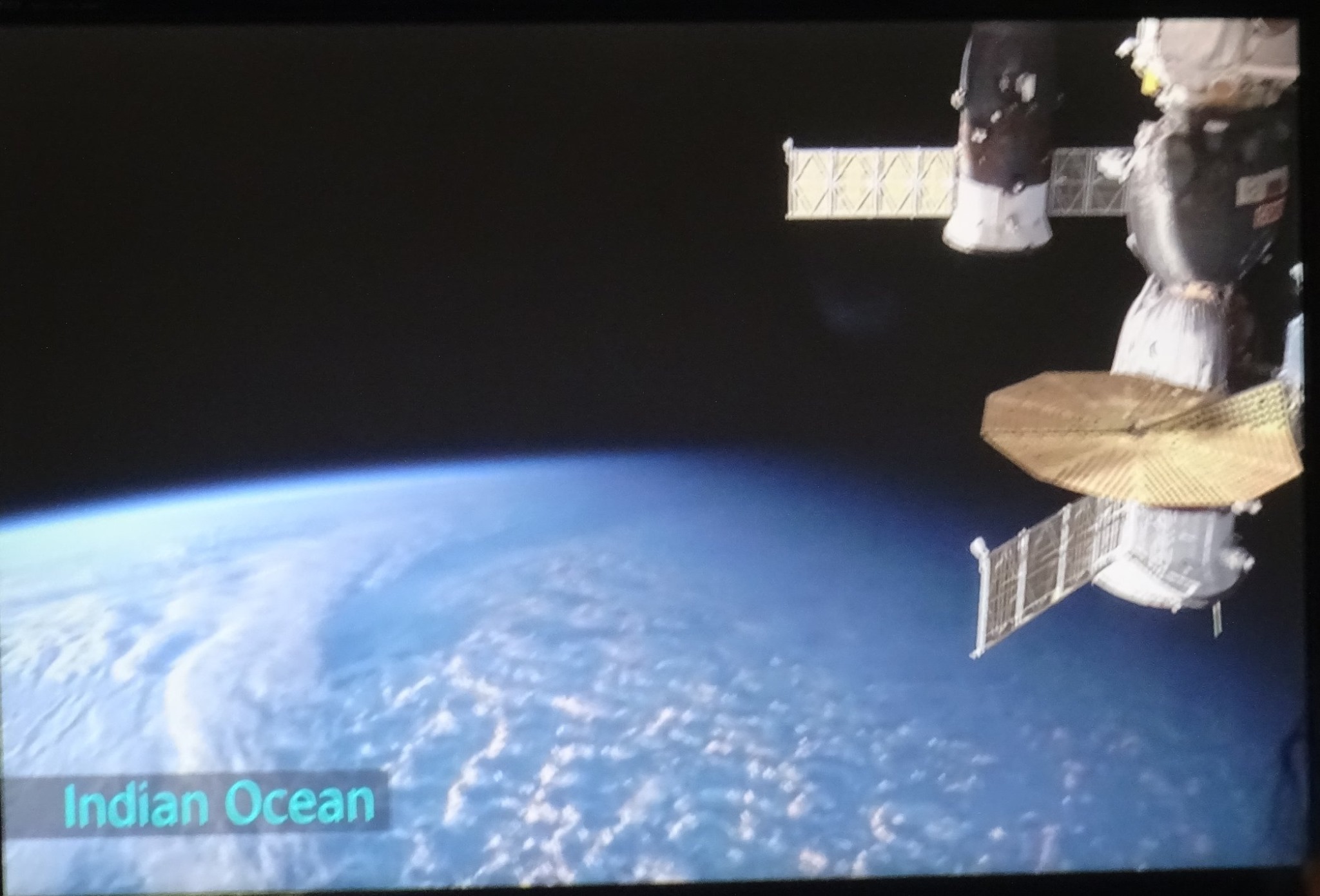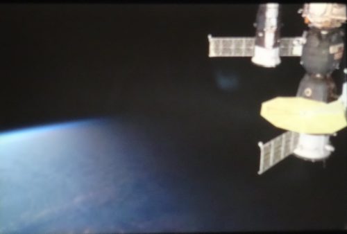 (📷写真) CGにも見えますが、教えて下さったのは「この後、地球の夜に宇宙ステーションが入っていく」と。