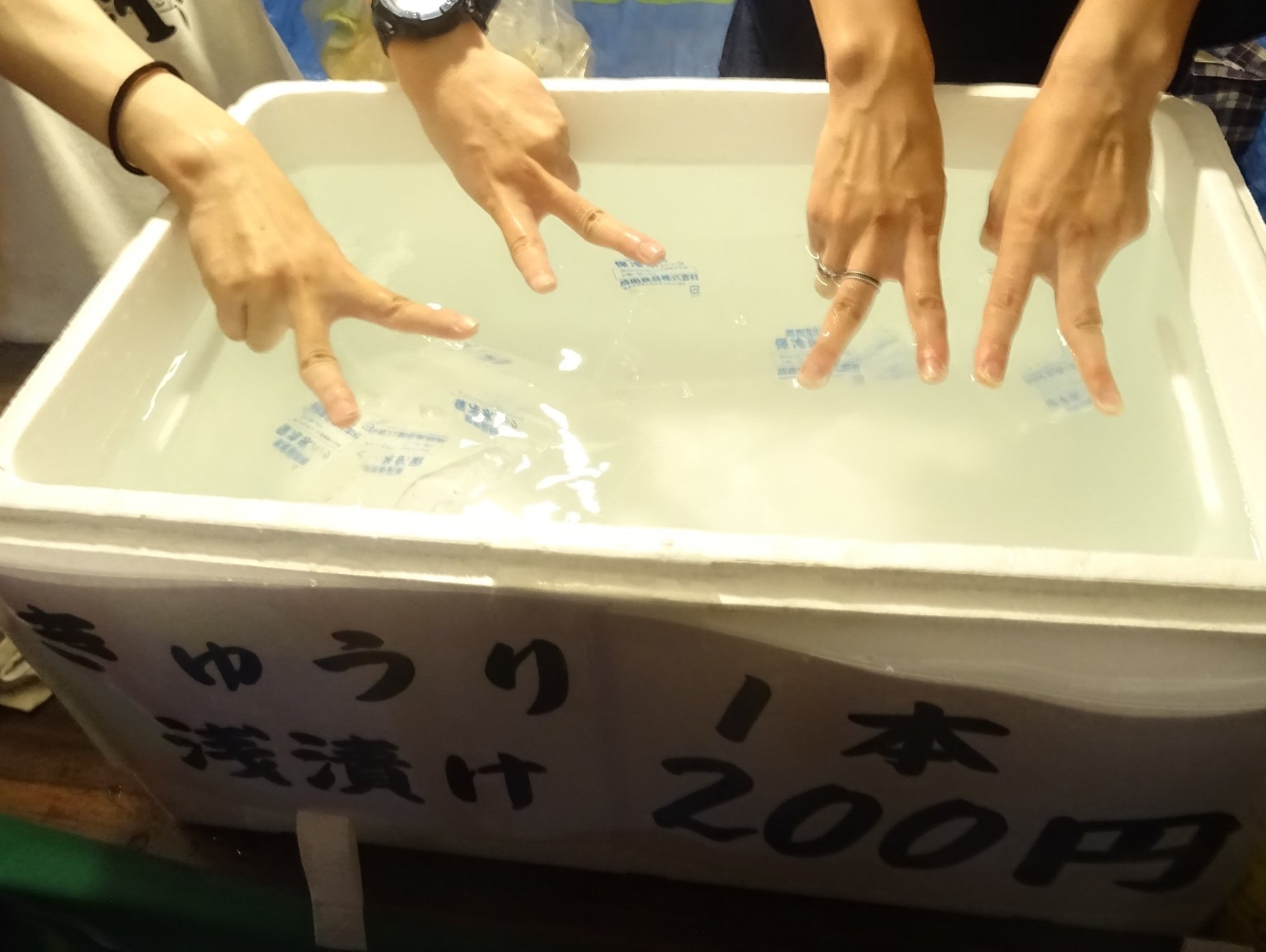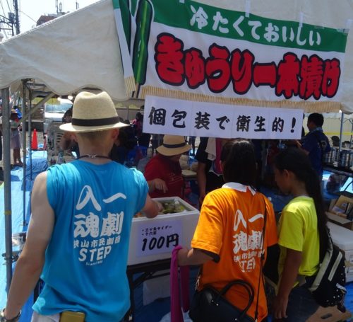 東小学校の子ども達に演劇を観てもらう為の【冷やしキュウリ】 今日の分640本、完売で、ピース
