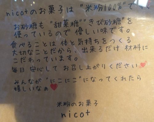 そういう中で、狭山・入曽に米粉のお菓子屋『nico+』さんがあるのは、ありがたいです。