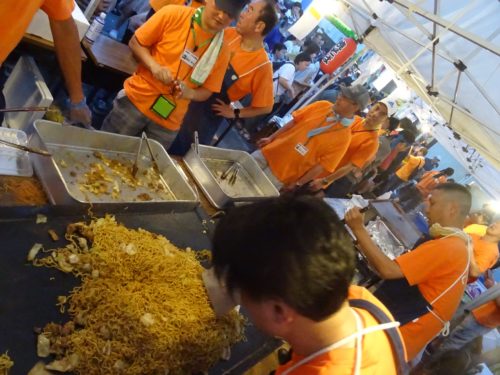 『中央中』親父の会(くすの樹会)は、焼そば1800食(2日分)を、30人のお父さん達と先生が、販売中。