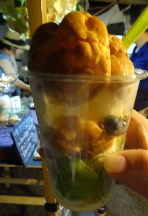 パフェの上にのっているシューも、小麦を使っていないのに、使っていないとは思えない食感がある。