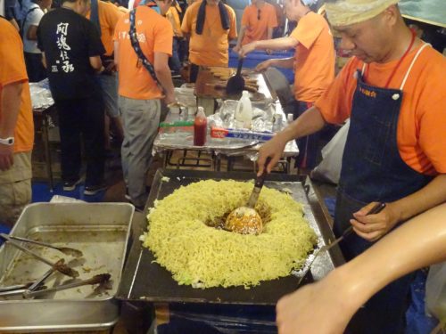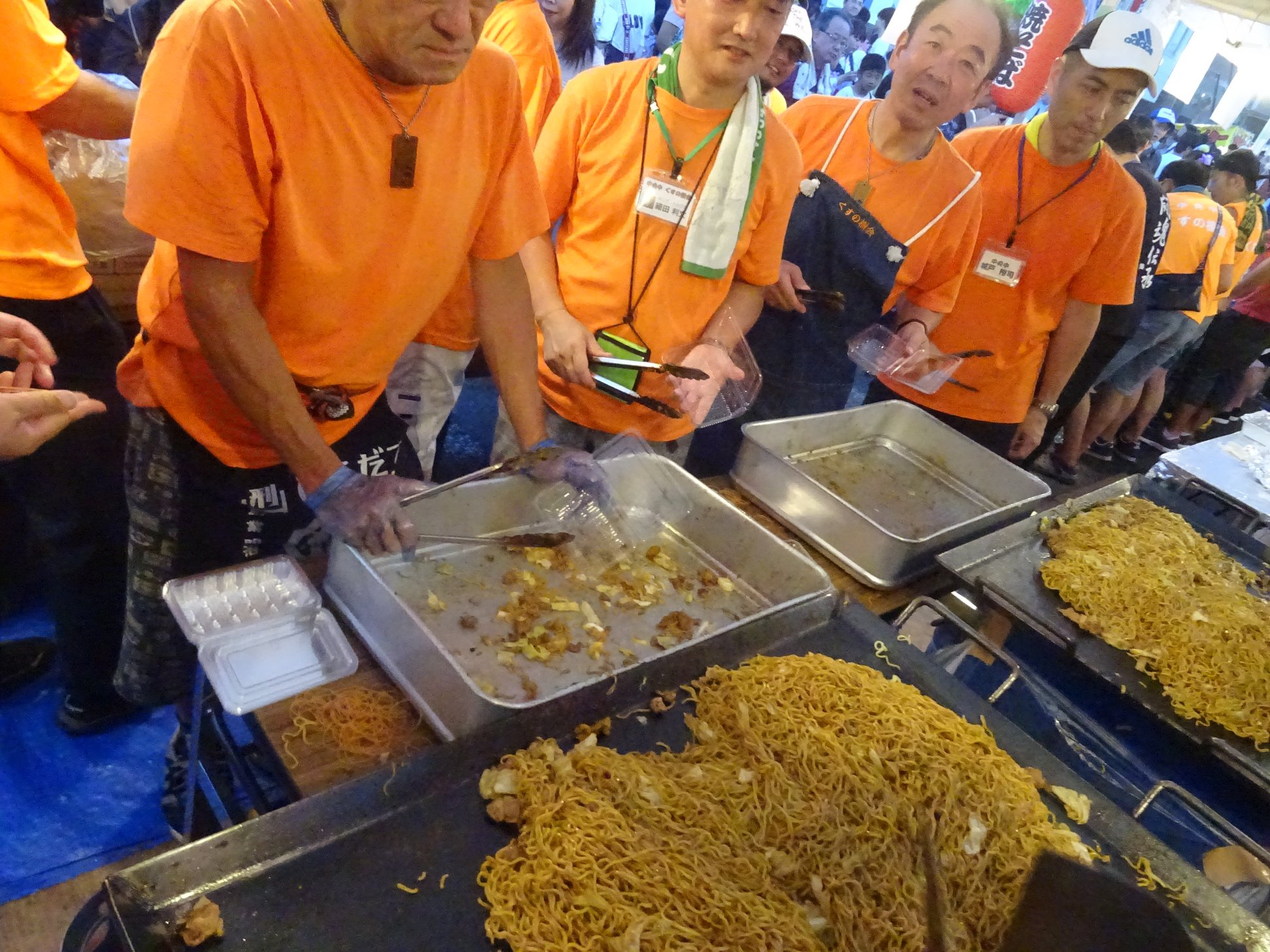 焼そばが出来るのが、待ちきれずに、『エア・ギター』のように、パックに焼きそばを詰めてるフリをするお茶目なオヤジの皆さんでした。(^O^)