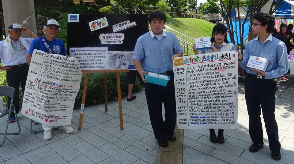 狭山の高校生と、ひかり幼稚園・東先生をはじめロータリークラブの皆さんが七夕祭り会場(駅前広場)で、『ポリオ』募金活動♥。