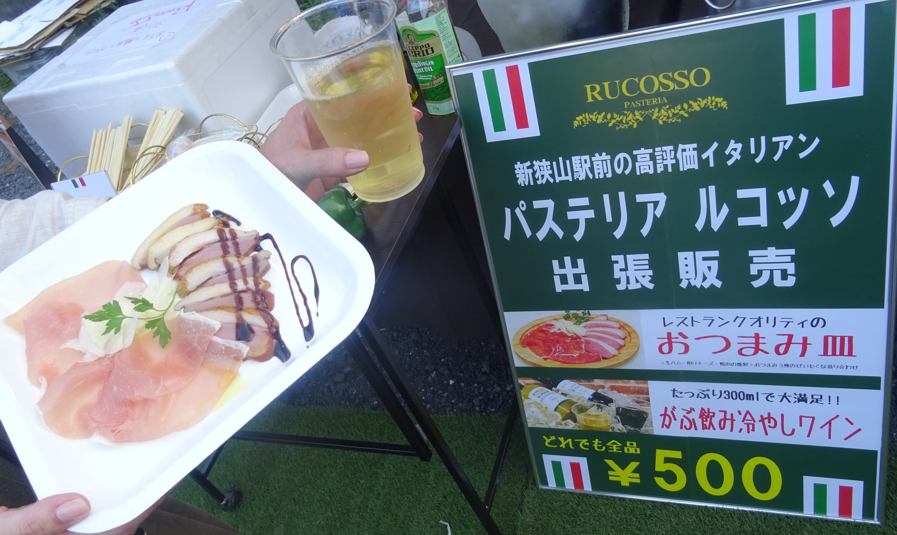 お祭りでワインを売っている所も少ないですし、こんなオードブルをお祭りで食べれるなんて(カモ肉・チーズ・生ハム)。