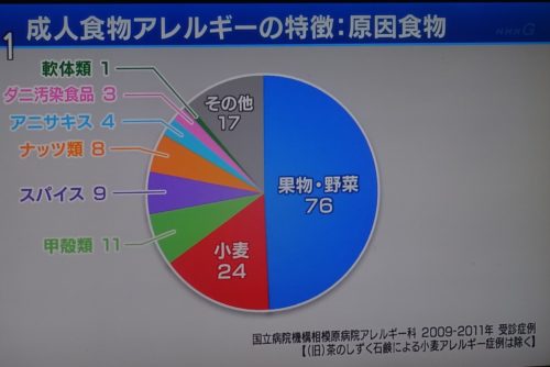 大人のアレルギー源は、子どものアレルギー源で多い牛乳・卵は少なく、小麦は24%。この24%を少ないとは思っていません。