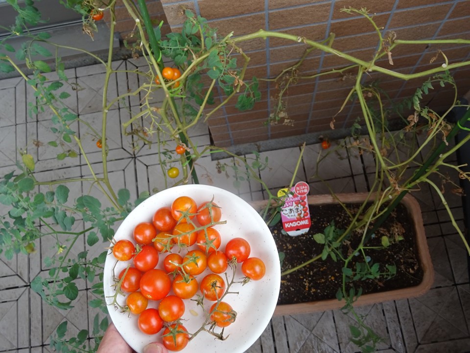 集合住宅のベランダの🍅ミニトマト。
