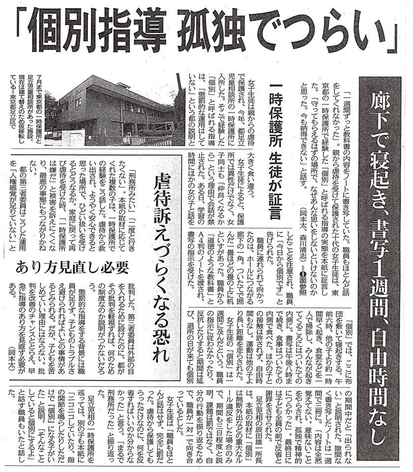 また、『保護される子ども』の視点で施設内の仕組みを県は長年構築して来なかった。子どもでいられる期間は18年。かけがえの無い、取り返すのは容易ではない成長期の時間だ。今後4年間で、どこまで変えられるか。 (📷東京新聞8月17日 『あり方見直し必要』の所をお読み頂ければ)