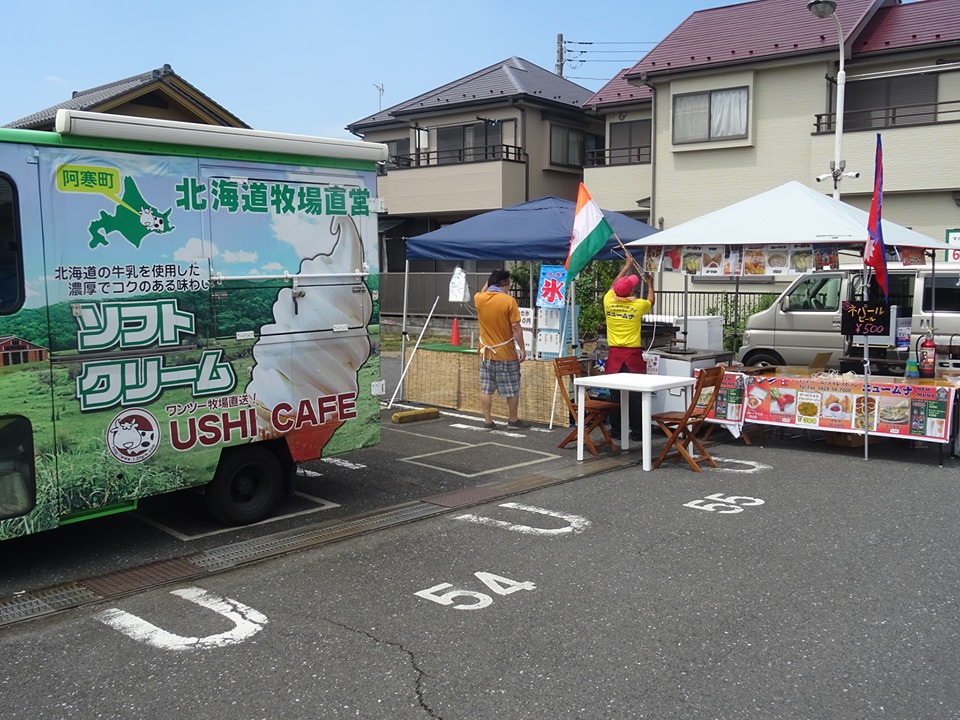 露店の他にも、🏫狭山台中の保護者の出店(フランク・生ビール・ポップコーン)や、自治会防災グループ(焼きそば)の出店もあります。