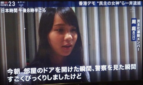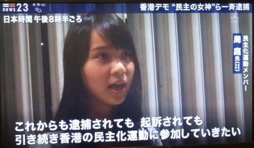 周さん「民主化の為に懸命に闘う香港市民を応援して欲しい」。
