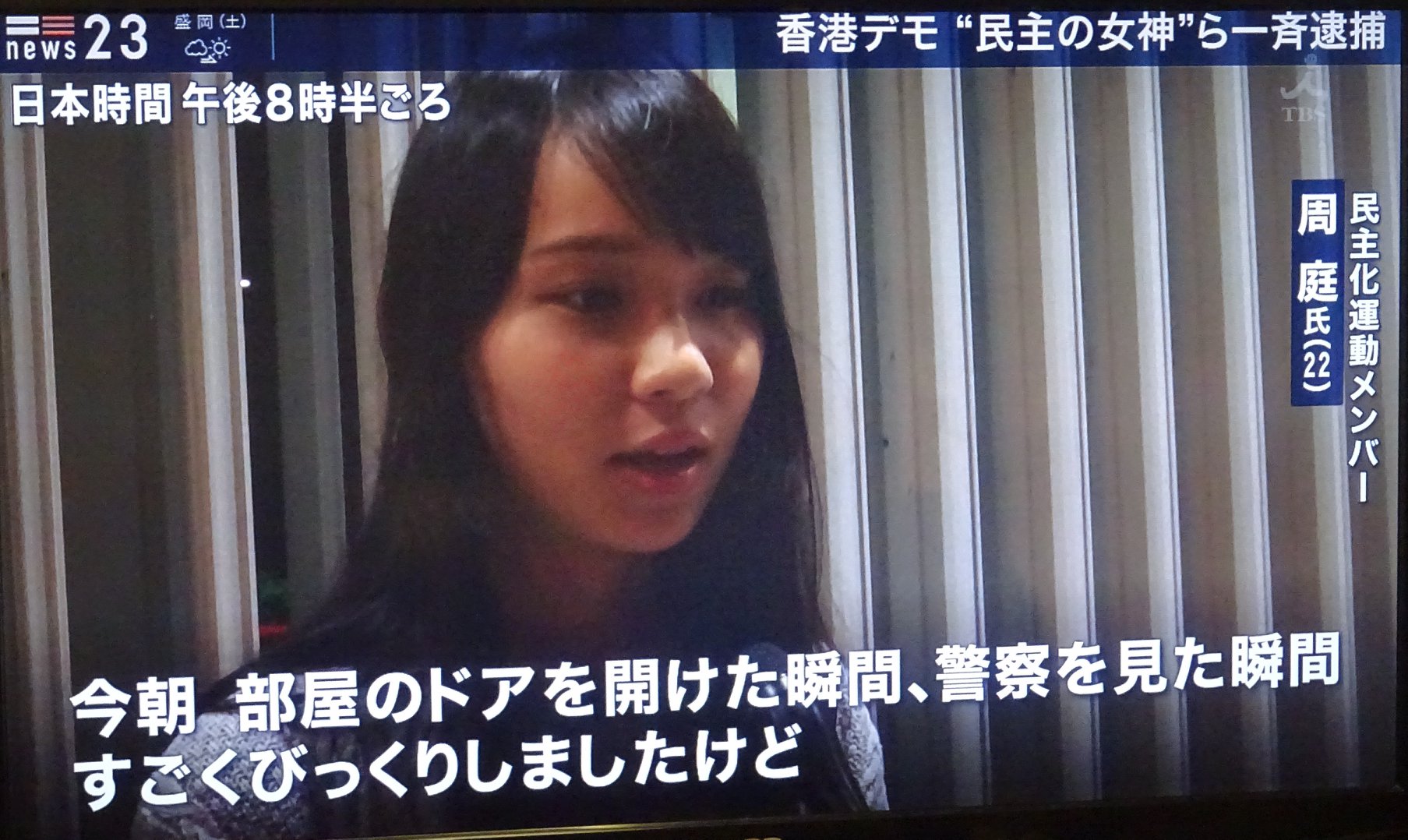 「中国は、公平な裁判を行う国ではない。不思議な形で死んだ人が、少なくない。これは怖い」「日本で会見してるのは、香港だけじゃ力が足らないから」「法改正で『人権保障』の文言を政府は入れなかった」「私が社会運動に参加して7年。2012年、『愛国教育』の方針を、政府は撤回した」「『香港の制度は、50年(2047年)変えない』と言った中国政府は守っていない」。