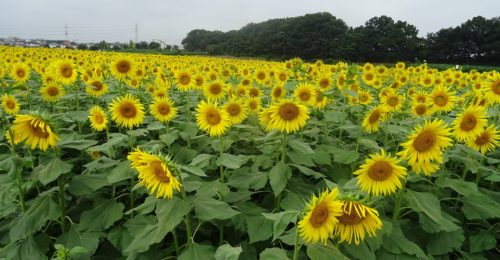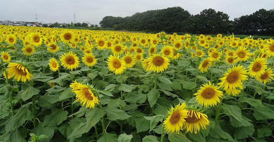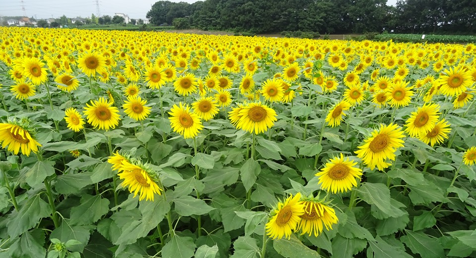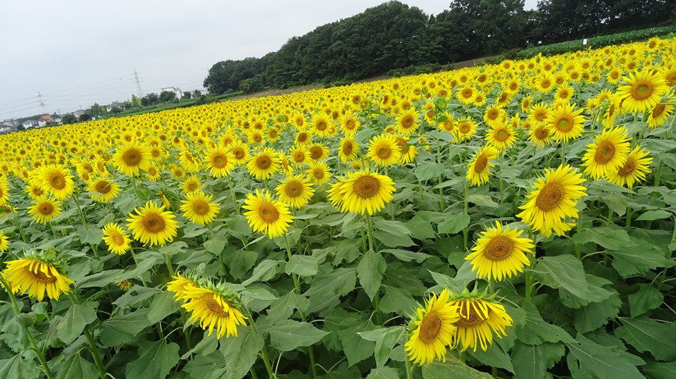 🏫堀兼中学校と🌻ひまわり畑の距離感と、ひまわり畑の規模。