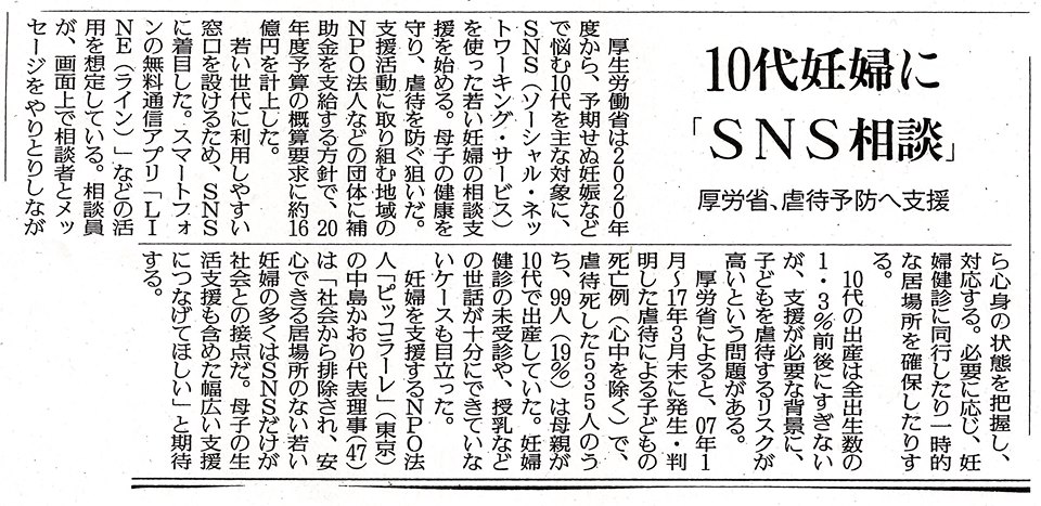 しかし、なんとこの記事でSNS相談の必要性を訴えているのは、県庁が『妊娠SOS』で昨年7月に委託した法人だ。県庁が日頃いかに『現場』と意見交換さえ していないかが、分かる。省庁が薦めたら、県庁は委託先にやらせるのか?